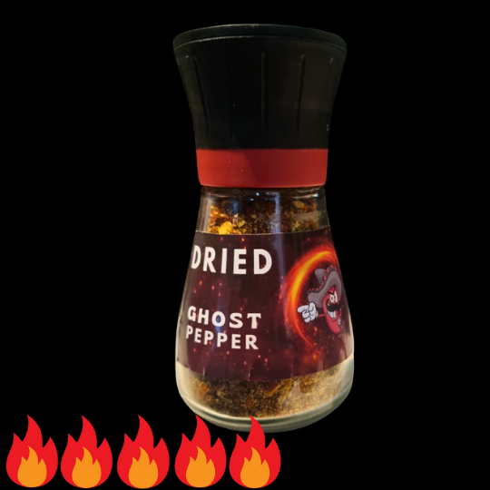 Bereid je voor op de legendarische Ghost Pepper, gevangen in een luxueuze molen. Deze beruchte peper staat bekend om zijn intense en sluipende hitte die zich langzaam opbouwt tot een onvergetelijke, gloeiende ervaring. Naast de extreme pit ontdek je een unieke, subtiel fruitige ondertoon die deze peper zijn complexe karakter geeft.